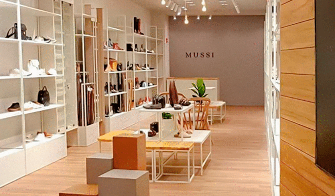Proyecto de mobiliario comercial para MUSSI en CC Fontanar, con soluciones de exhibición a medida que refuerzan su identidad de marca y mejoran la experiencia en tienda.