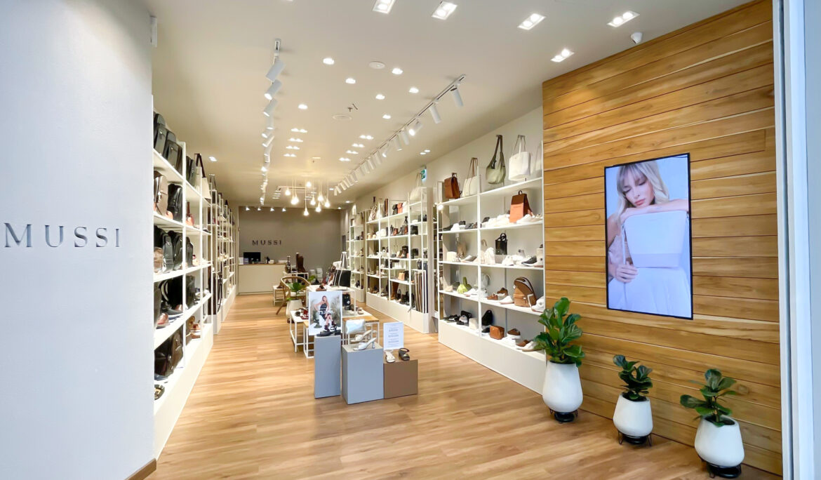 Proyecto de mobiliario comercial para MUSSI en Bogotá, con soluciones de exhibición a medida que refuerzan su identidad de marca y mejoran la experiencia en tienda.