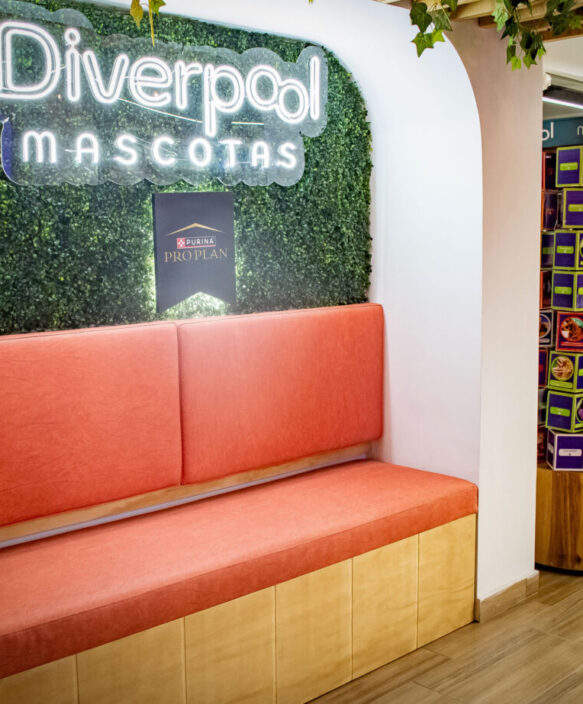 Diseñamos un espacio que combina funcionalidad y calidez para potenciar la experiencia de compra y bienestar en este centro integral para mascotas. Desde la primera impresión hasta los puntos de exhibición, cada detalle fue pensado para reflejar el espíritu lúdico, moderno y cercano de Diverpool, alineando su propuesta de valor como un centro de experiencias donde las mascotas encuentran diversión y bienestar en un solo lugar, con un entorno que invita a quedarse, explorar y volver.