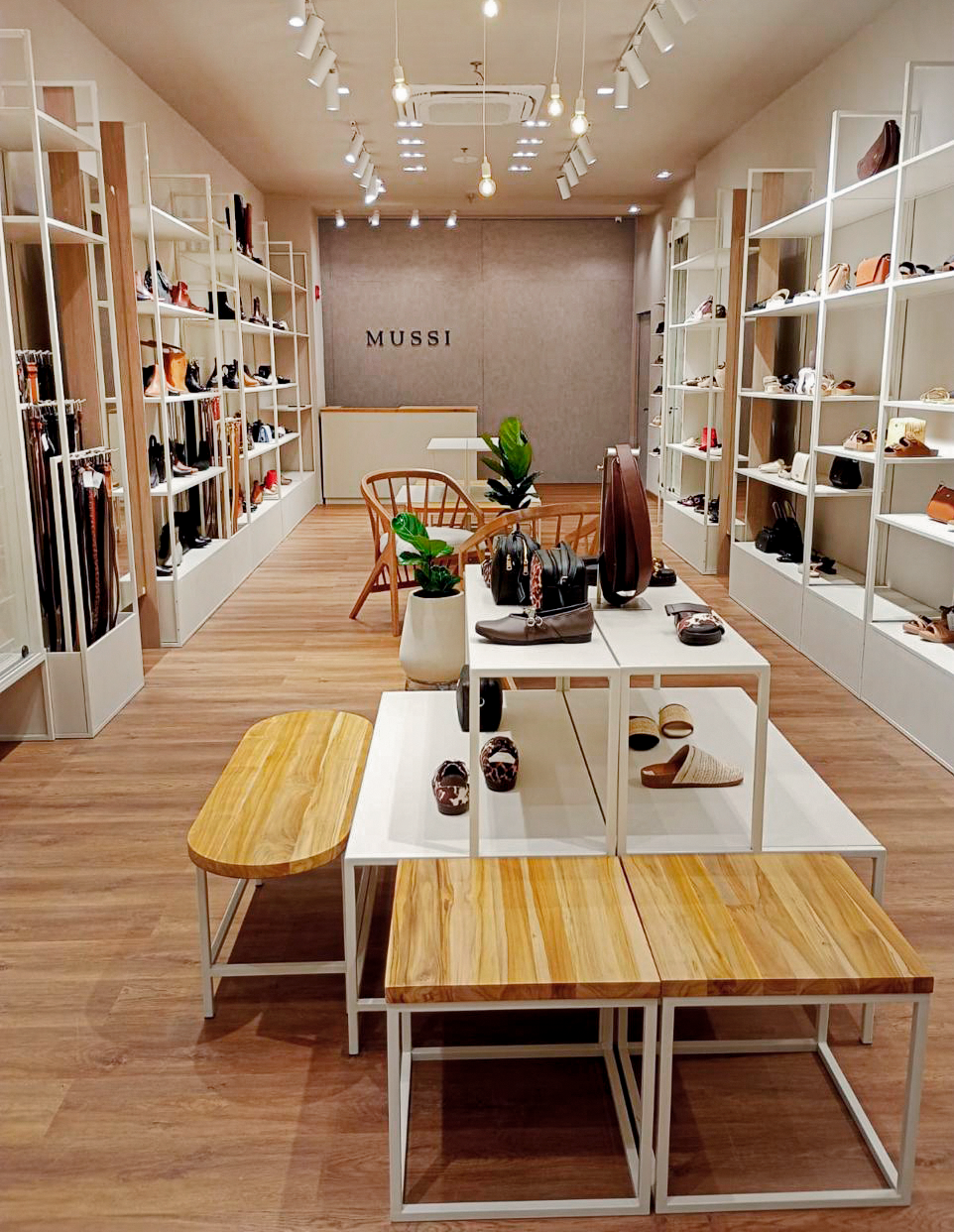 Proyecto de mobiliario comercial para la tienda MUSSI en el Centro Comercial Fontanar, Chia. Diseñamos soluciones a medida que combinan funcionalidad, estética limpia y durabilidad, en coherencia con la identidad de marca de MUSSI y su enfoque en el detalle, el servicio y la experiencia del cliente en tienda. Realizamos el siguiente mobiliario: